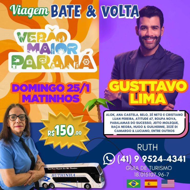 A Ruthinha Viagens nasceu com um propósito simples: proporcionar experiências inesquecíveis para quem busca fé, tranquilidade e bons momentos. Com saída de Curitiba e região, organizamos excursões para Aparecida com conforto, segurança e carinho em cada detalhe.